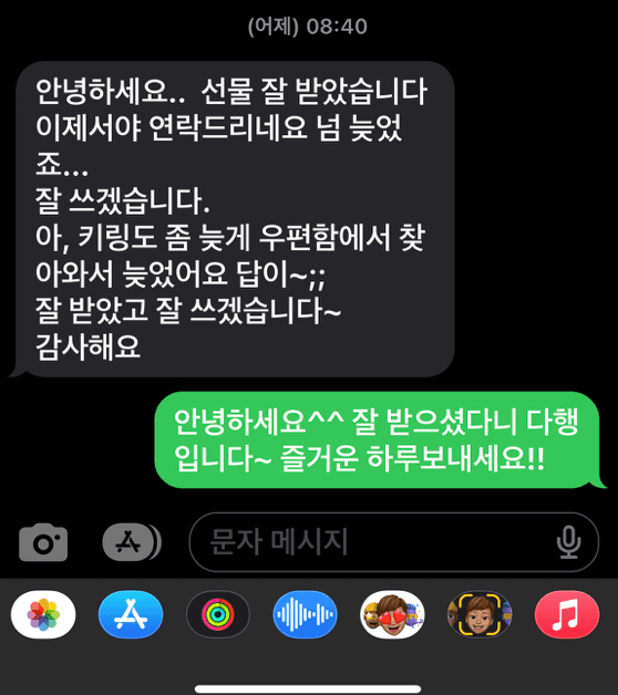 또 다른 고객님은 이런 놀라운 선물로 저를 놀라게 하셨다며 도리어 저에게 카톡으로 선물을 보내주셨습니다.